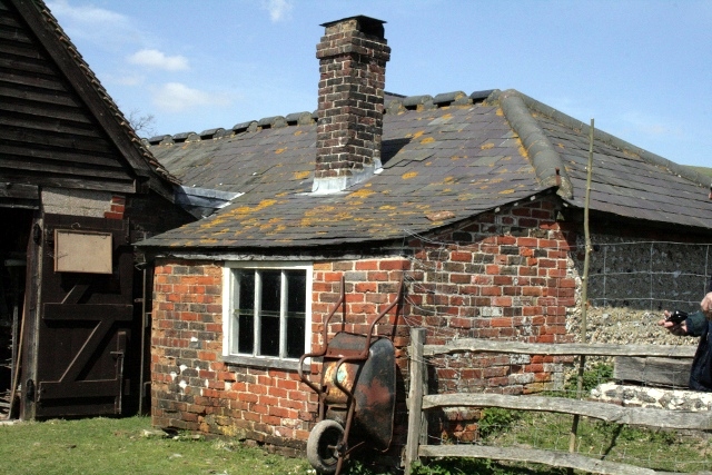 We excavated a 2x2m square on the western side of the south gable end of the cottage. This was an extension built sometime between 1873 and 1898. Those who lived there have said it was a sort of lean-to conservatory. Perhaps it was similar to this structure I photographed on one of the outbuildings of Saddlescombe Farm on their Open Day last Sunday.