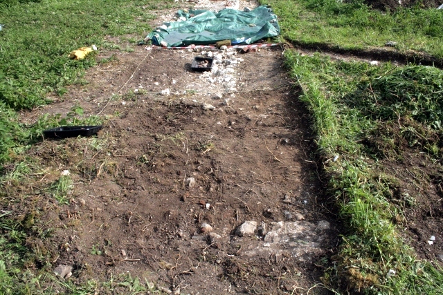 Trench 1 has now been extended right up to the north boundary wall of the property. Enough of this north wall has now been exposed to estimate its course, only a couple of feet south of my earlier estimate based on a 1921 plan.
