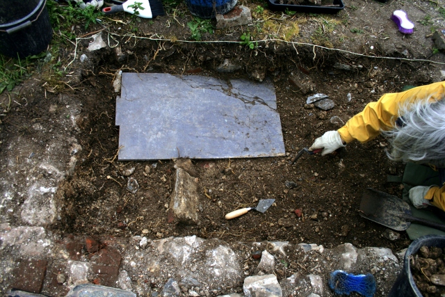 and a large slab of slate 18″ x 2’6″ x 1″ (46cm x 78cm x 2.5cm). There was no indication of the slate’s use – it was blank on both sides.