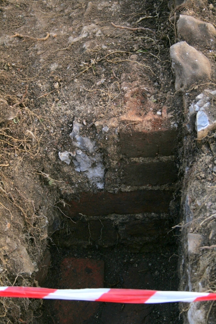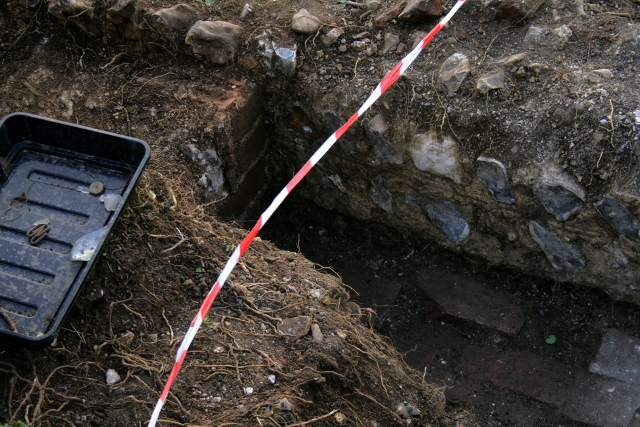 Four courses of the brick and flint wall at the back of the woodstore were uncovered.