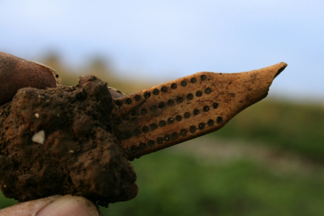 The afternoon before, and all the next day, were both too wet to dig. So this afternoon my mother and I snuck in half a day’s digging. We even had a WW2 biplane fly over, then swing back round to have a closer look – as well as one of the best finds of the dig!