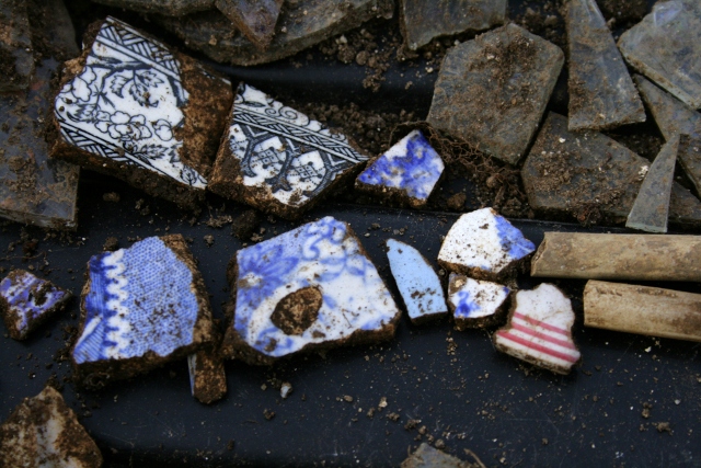 Decorative ceramic sherds and clay pipe stems; 12th October 2013.