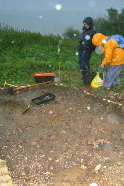 Sunday’s dig ended with torrential rain, though fortunately it stayed dry until afternoon tea-break, so some good digging managed to be done.