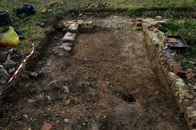 Monday afternoon we took the opportunity of a break in the weather to excavate down through the chalk rubble backfill which formed the foundation for the ~1880 extension’s floor.