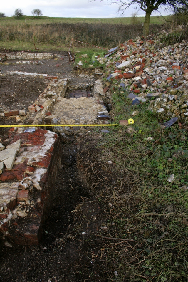 The west wall of the cottage was cleaned up sufficient to outline at least the top of its outer face.