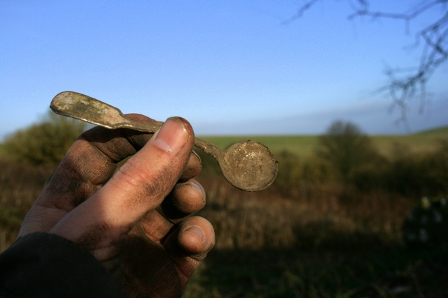 Marks on silver plated salt/sauce spoon A silver plated ‘fiddle back’ design salt/sauce spoon with 6 date/factory marks (though as yet illegible) – this design may date from the Georgian period onwards – we need to find out the best way of cleaning the marks of their deeply ingrained crud, without damaging the fabric of the spoon;