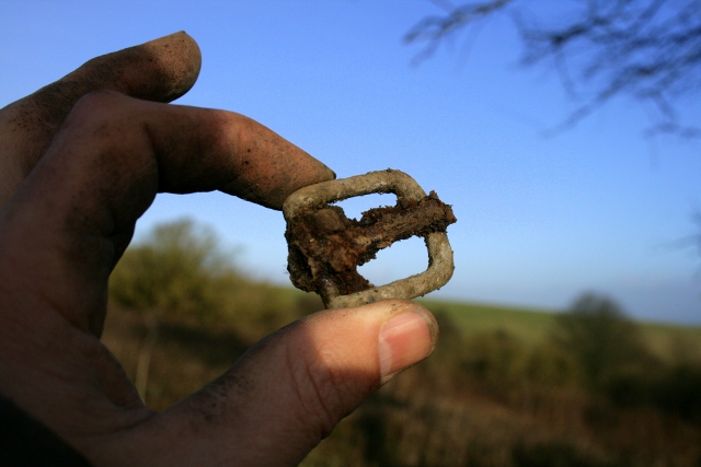 A belt buckle A belt buckle with a copper alloy ‘frame’ and a ferrous ‘prong’;