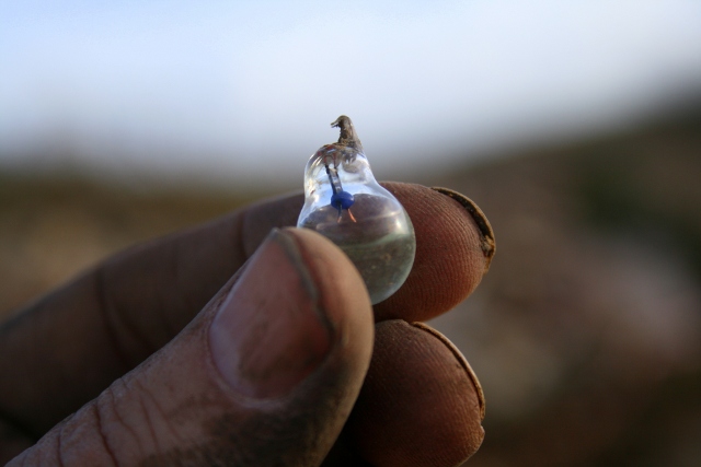 Small (hand blown?) light bulb (half filled with water) from under front doorstep; 27th January 2014