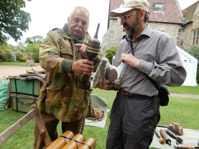 Fortunately, because the day was pretty full on for me, I had the support of another David, as well my mother – though she was kept pretty busy pushing my elderly dad around in a wheelchair kindly lent by Michelham Priory. They were both especially useful photographing some before and after pictures of our excavated, fired ordnance, whilst I looked after our stand and talking to interested visitors.
