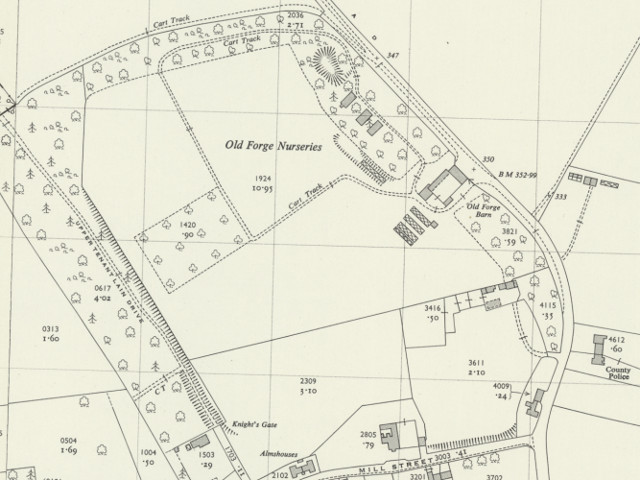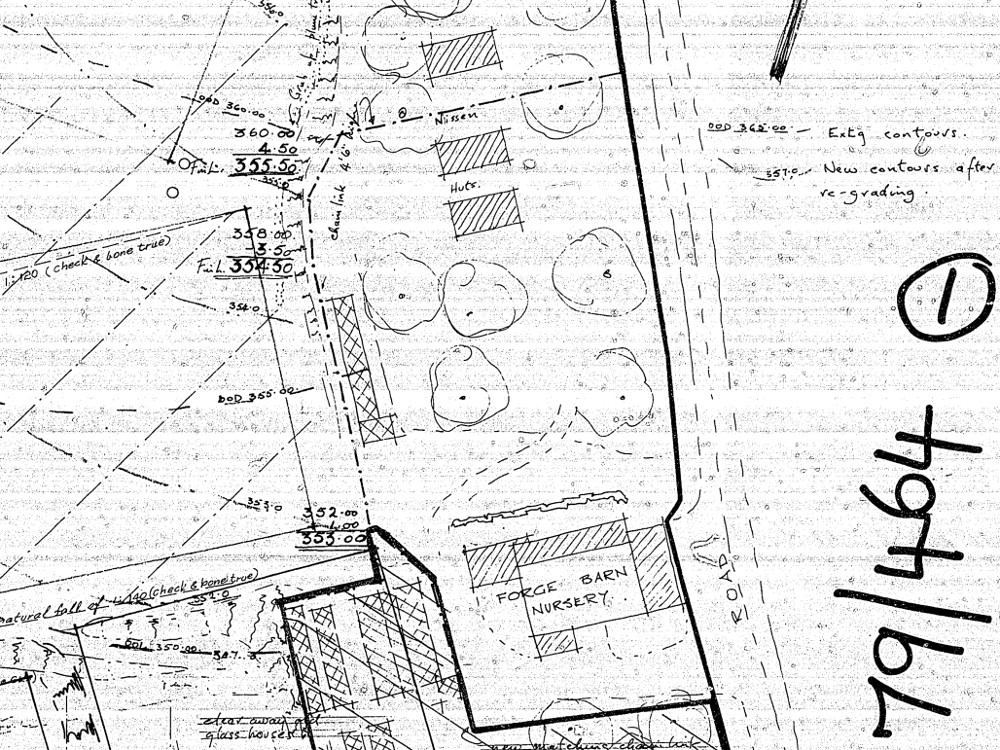 The row of three buildings under the trees to the north west of the Old Forge Barn look interesting. Fortunately there was a planning application in 1979 recorded on the Lewes District Council website. This included a detailed plan of the site.
