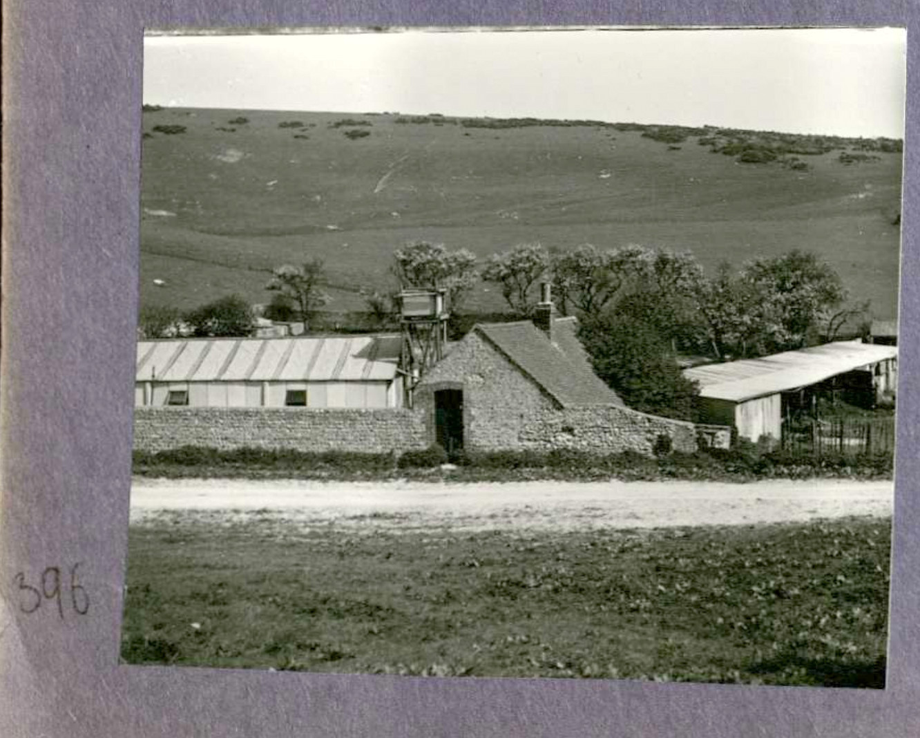 This photograph was part of a collection of WW2 photographs of Brighton and its surrounding downs. The album included military parades, bomb damaged buildings, crashed aircraft, and a series of photographs of Balsdean Farm (of which the Newmarket Farm was a part).