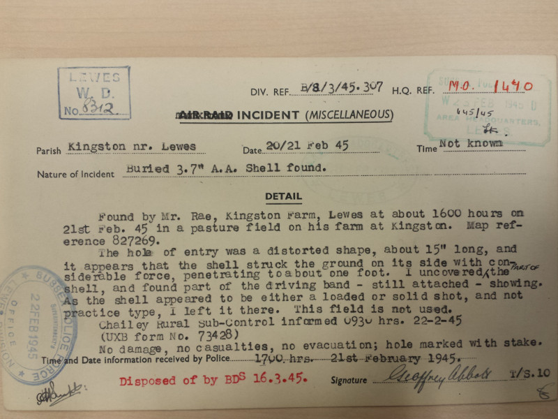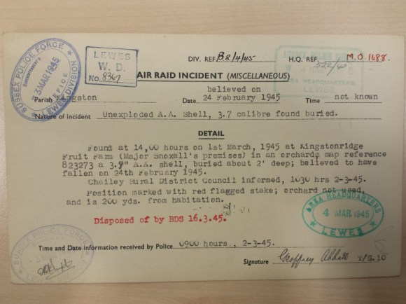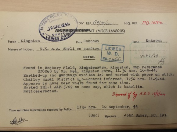 1944, September 10th – Unexploded Anti-Aircraft Shell on Kingston Farm