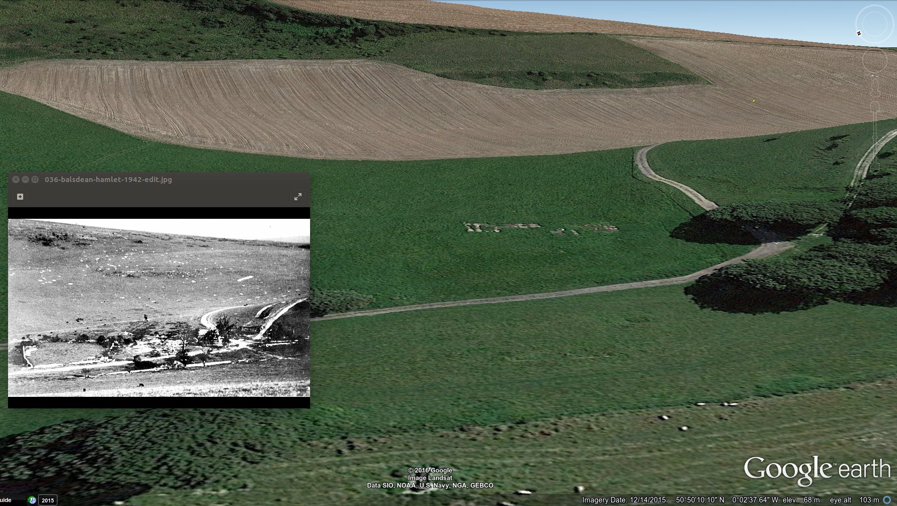 The pictures were not part of the original broadcast. The first was of Balsdean Farm shortly after the military took over; the next few are of a range of Imperial War Museum photos of generic training activities; the tank picture is also from the I.W.M., and was taken in the village of Rottingdean immediately to the south west of the Balsdean military area; the plane crash pictures were of a Dakota (C47) allied troop transport plane which crashed on a hill top near Newmarket Plantation, in the northern part of the training area, killing almost all on board; the last image is of Balsdean towards the end of the war.