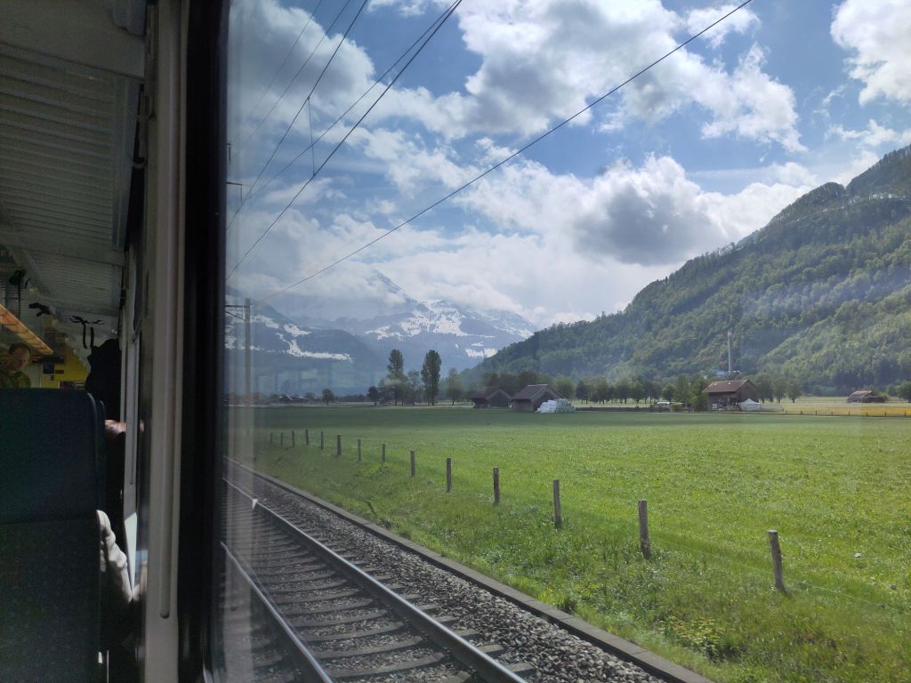My train in the morning left the Paris Basin and its chalk behind, as I headed eastward into the Swiss Alps. My first change of trains was in Zurich where I observed buildings built of limestone (presumably local). My guess is that it came from the nearby Jura Mountains – a ridge of hills which run along the French-Swiss border. They gave their name to that most famous of geological periods – the Jurassic – made famous by the Hollywood dinosaur films. As you may have guessed I was excited by this!