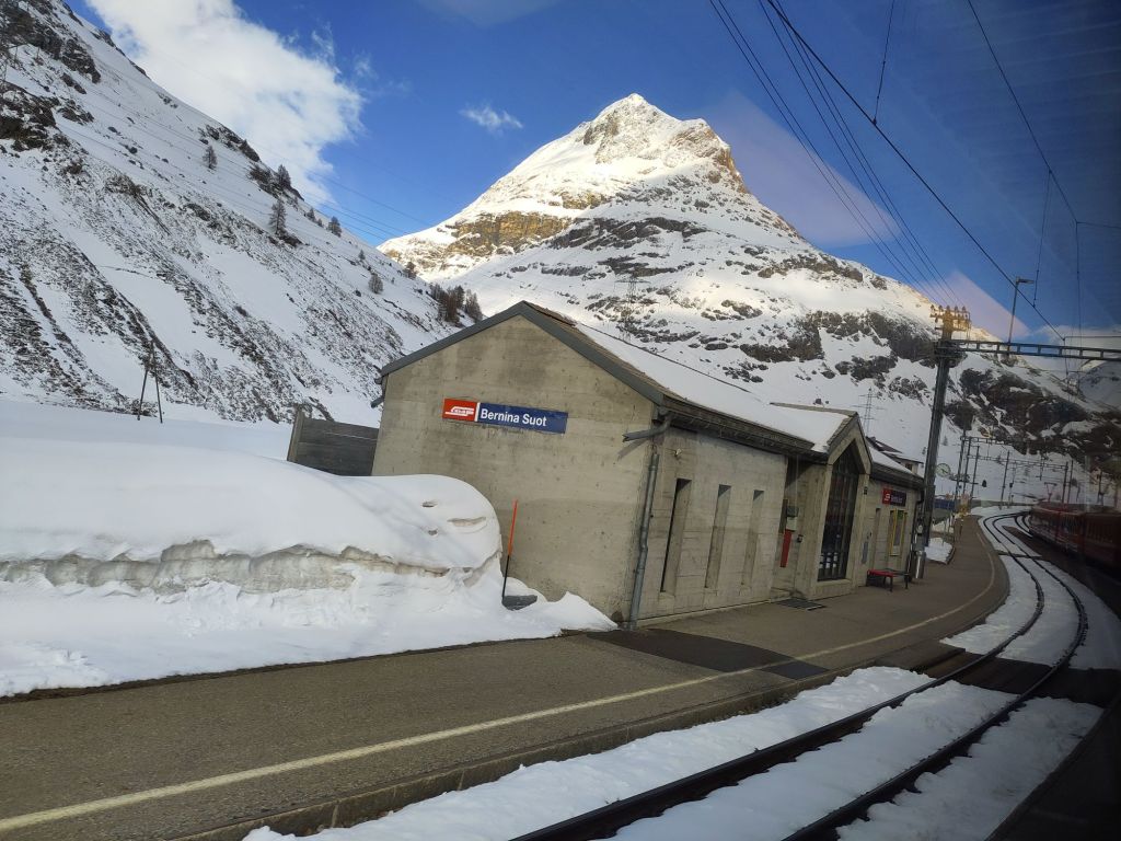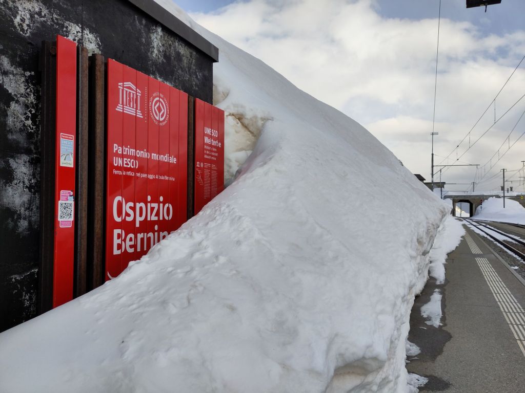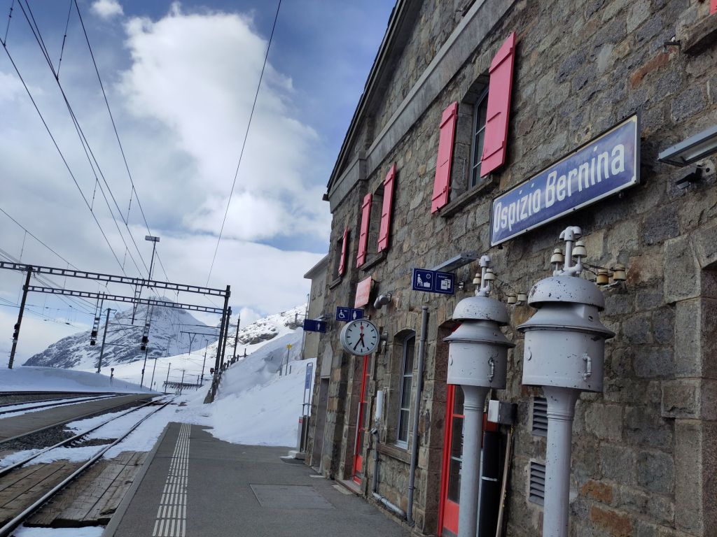 I arrived to a totally deserted, literally freezing station. Ospizio Bernina – 2,253 metres above sea level – is both the highest station and highest point on the Bernina Railway.