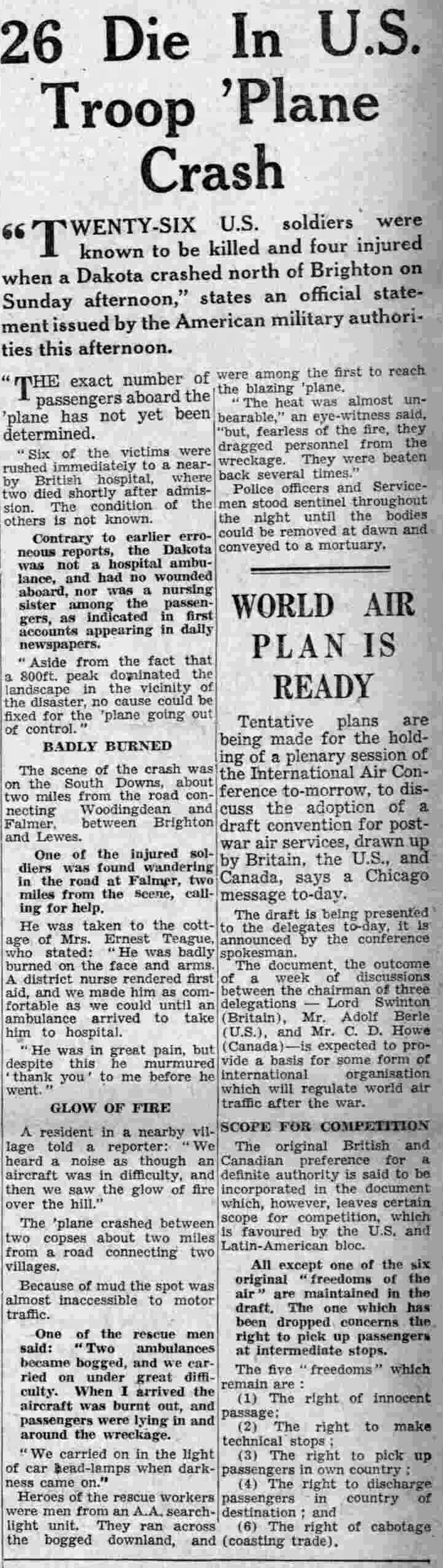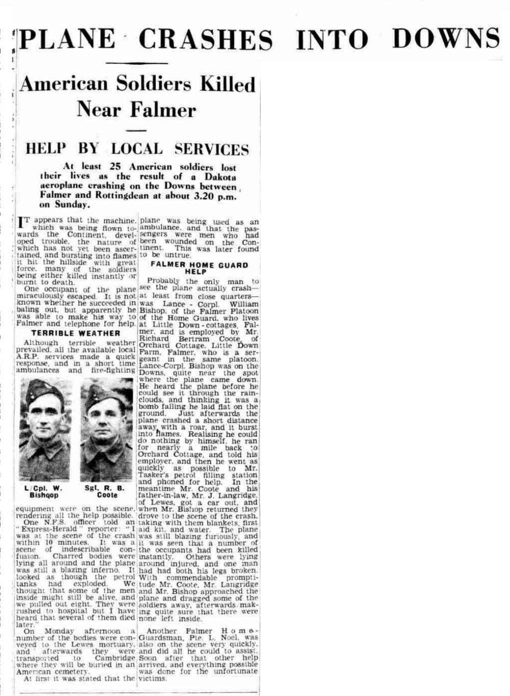 Tomorrow is the 80th anniversary of this tragedy. I am sorry that I was unable to organise a commemorative visit to the site of the crash this year as I had hoped. I have previously written of it here and here. A few years ago I was privileged to speak to two eye-witnesses. Included below are some pictures from a walk I led two years ago, confirming the location of the crash site – as well a number of newspaper reports.